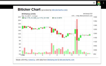 Biticker là một tiện ích miễn phí dành cho Chrome được phát triển bởi ronency. Nó cung cấp cho người dùng tỷ giá trao đổi Bitcoin thời gian thực theo USD hoặc EUR, cũng như biểu đồ cập nhật về khoảng thời gian đã chọn.